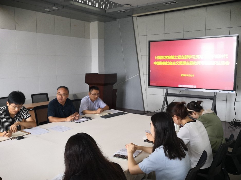 2023年9月12日上午,计算机学院博士党支部在计B524召开学习贯彻习近平新时代中国特色社会主义思想主题教育专题组织生活会,学院院长周勇出席并指导此次会议。本次会议由党支部副书记付德权主持,支部全体党员参加。