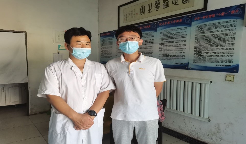 第一小队队员周宇和胡集村党支部书记的合影