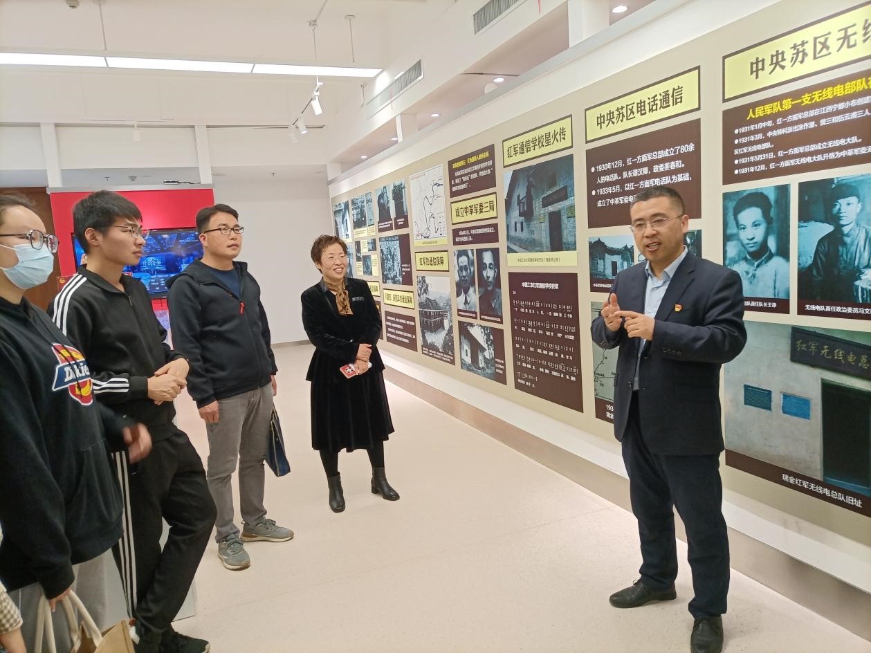中国移动公司的红色通信展厅是徐州三大红色教育基地之一,以“激荡的电波”为主题,以“追寻红色通信初心”为主线,陈列着大量革命战争时期的通信设备,记载着大量可歌可泣的红色故事。在红色通信展厅里,实践团了解到中国共产党第一部无线电密码“豪密”的由来、战争时期通过破译电报获得反围剿胜利、毛泽东主席题词“全心全意为人民服务”等历史故事。从最开始的“半部电台”,到开办无线电队训练班和无线电学校,再到组建无线电通信大队,红军无线电通信力量日益壮大,充分保障革命军队的通信安全。