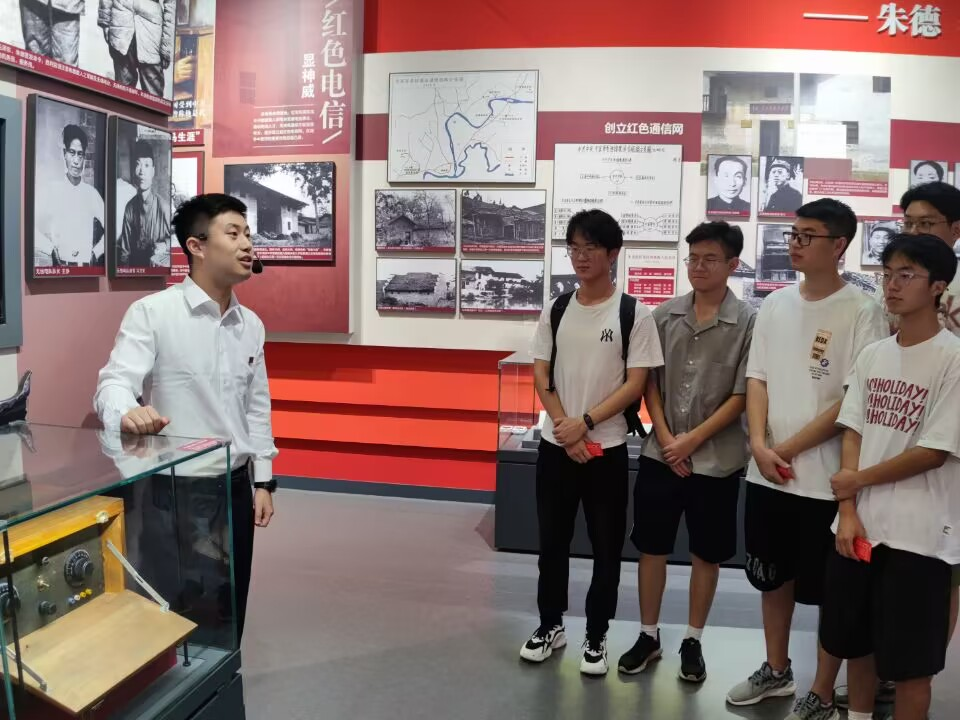 中国电信博物馆以“百年电信,红色传承”为主题,展示了中国的通信发展历程,包括古代、近代和现代三个部分,汇集了千余件通信藏品,其中清末的共电式人工交换机、开创红军通信事业的半部电台、延安通信材料厂生产的电报机、打通中国第一个GSM电话的移动电话,众多展品、模型、老照片和景观汇集在一起,构成了中国通信的发展历程的完整陈列。博物馆讲解员为实践团成员介绍了李白烈士和王诤将军的故事,着重讲述了由半部电台开启中国通信事业的波澜壮阔的历史,是“红色电波“精神的生动写照。同时,实践团成员体验了博物馆内的模拟发报机,根据提示用摩斯密码发出了李白烈士发出的最后一封电报,切身体会到先烈为革命事业作出的伟大贡献。