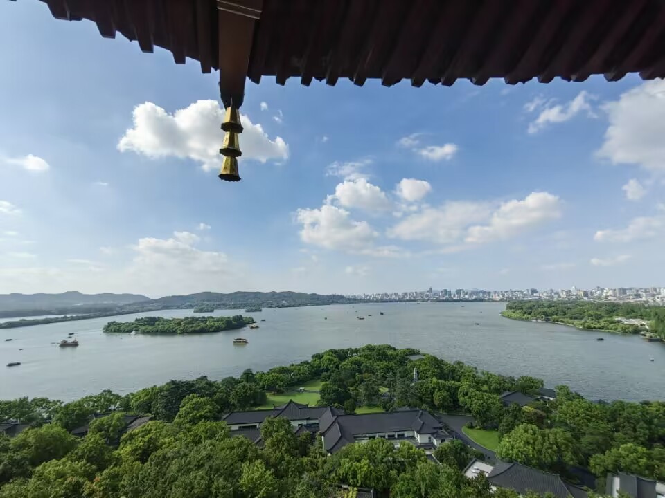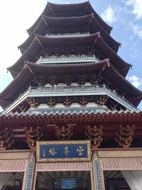 8月4日上午,实践团沿西湖北面环湖而行。从“集贤亭”出发,至“苏堤”而停,途中历经“柳浪闻莺”、“钱王祠”等处。实践团成员体验进行游船、登雷峰塔等活动。在游船活动中,实践团成员一边在船上近距离欣赏西湖水,一边听广播中对西湖的具体详细的介绍,进一步体会到苏轼、白居易笔下的西湖之美。新雷锋塔是在已损雷峰塔的废墟上所建而成,在登新雷峰塔中,每层雷峰塔都通过石雕等方式记录了不同的历史,我们仔细参观学习了新雷峰塔所记载的内容,并通过与当地市民交流,进一步感受到雷峰塔流传于世的不仅有“许仙白娘子”的传奇故事,还有其记录的那段中国的历史,更有当时我国领先于世界的瑰伟的历史文物。实践团成员在雷峰塔最高层,在西湖风的拂面下,观赏感悟西湖全景,再一次被西湖不同角度的景色所震惊,真是“欲把西湖比西子,淡妆浓抹总相宜”。