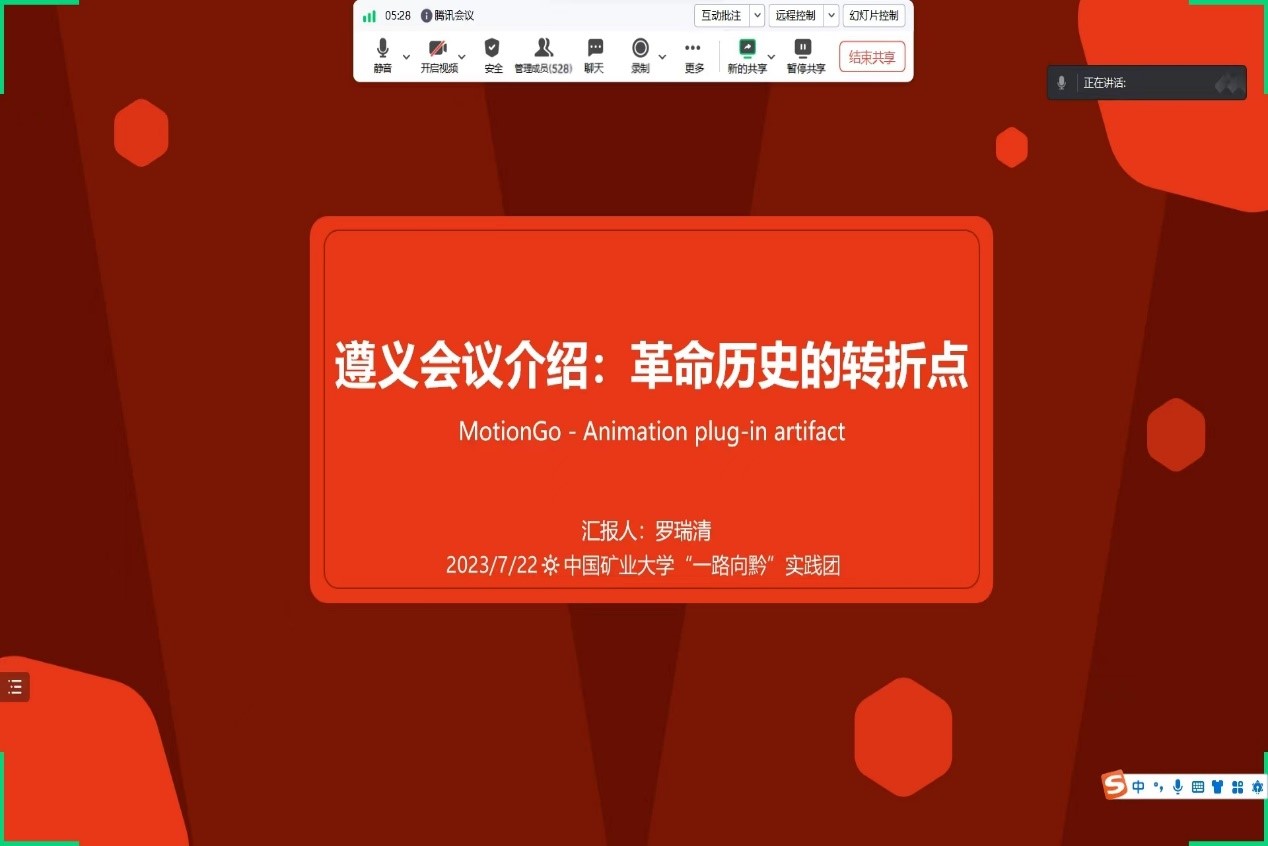 为推动贵州红色文化传播,大力宣传红色精神,一路向“黔”实践团在当地农庄社区社区委员会与两路口村村委会的热切协助下于7月22日上午开展遵义会议线上宣讲会。当地群众反响热烈,参与积极,宣讲参会人数共计528人。此次会议,旨在普及宣讲遵义会议历史背景、会议内容、精神内核及历史意义。宣讲目录涉及六大方向:开启红军新征程、重新明确革命方向、实现全军革命化、着重发扬红军优良传统、赢得新的政治体系、推动党的全新发展。其中宣讲内容着重强调了毛泽东同志领导的正确定位,中国共产党领导是历史的必然选择两大关键要点。