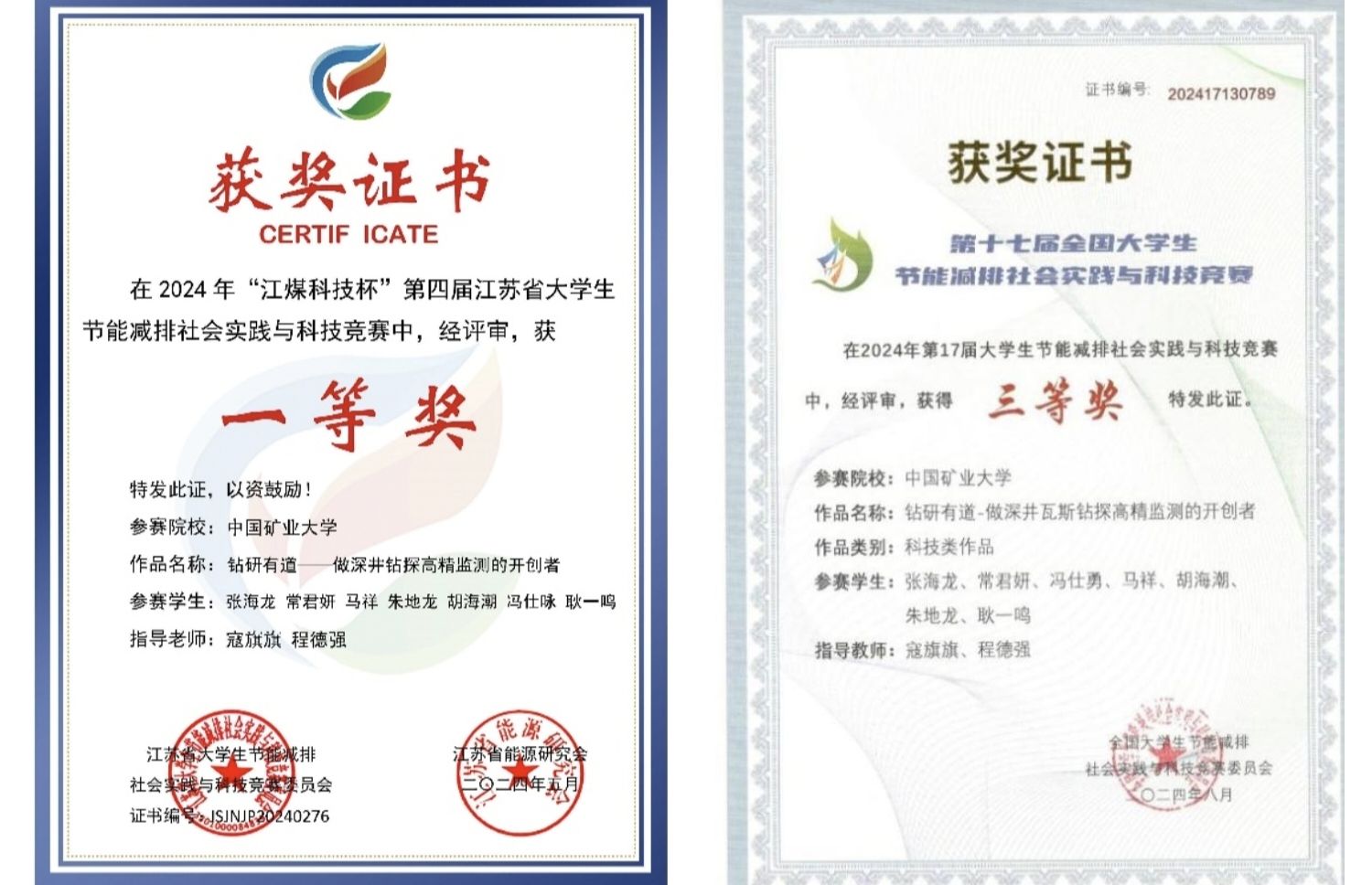 由计算机学院寇旗旗副教授作为第一指导老师,2023级研究生张海龙作为团队负责人的参赛作品《钻研有道——做深井钻探高精监测的开创者》,经过线上初赛和分区赛层层选拔,在成功斩获第四届江苏省大学生节能减排社会实践与科技竞赛一等奖后晋级到全国决赛,最终在全国决赛中荣获三等奖。